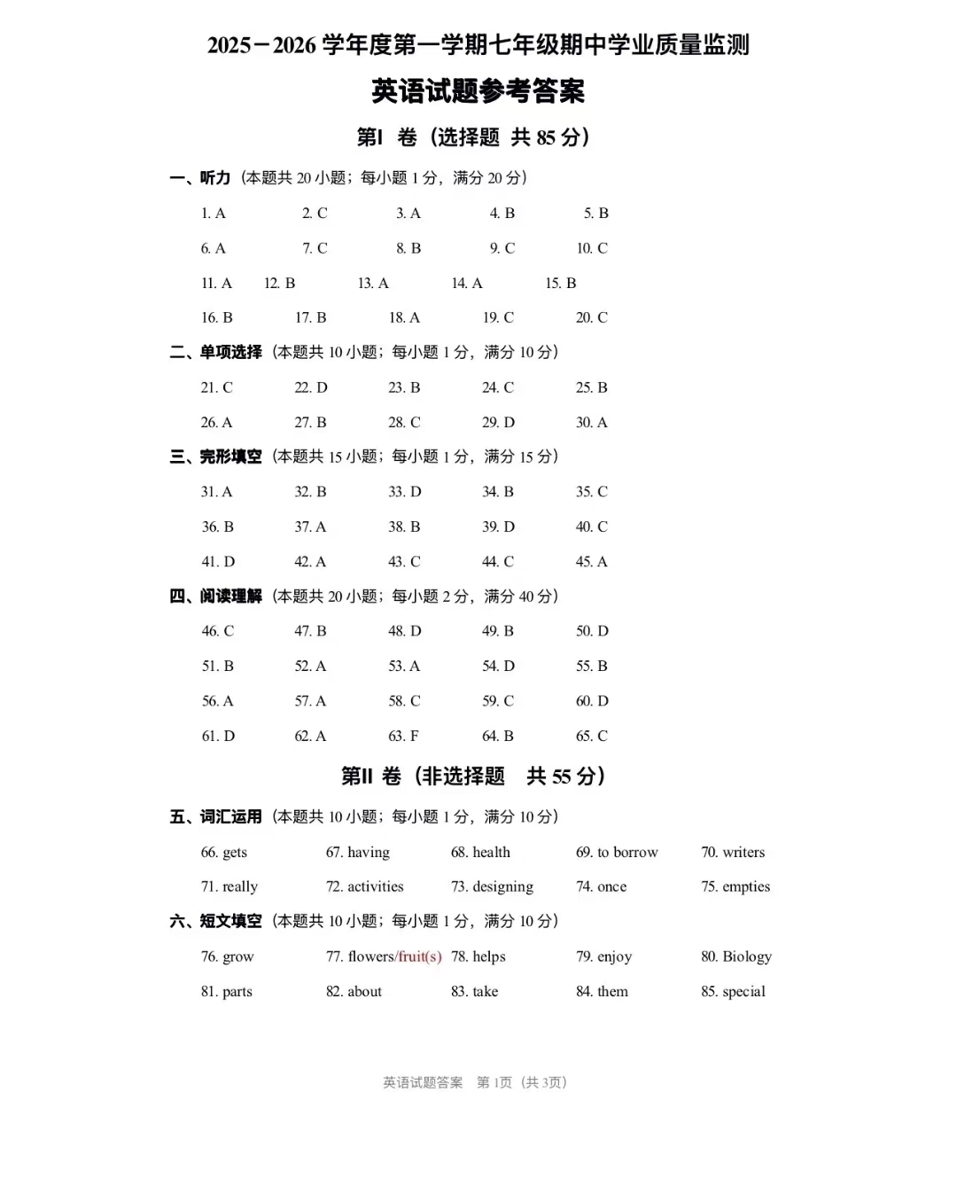 2025-2026如皋7A 期中英语试卷答案
